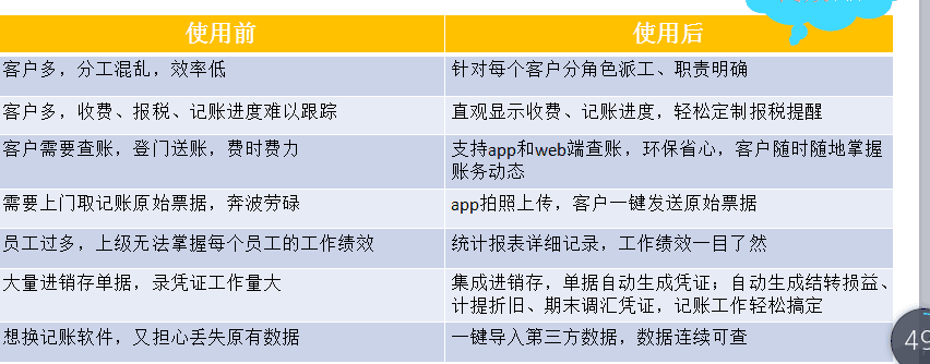 替多家企業(yè)代賬難以管控,收費(fèi)進(jìn)度跟蹤困難,稅項(xiàng)到期無人提醒;客戶多了賬務(wù)零散,跟蹤無序容易遺漏。
